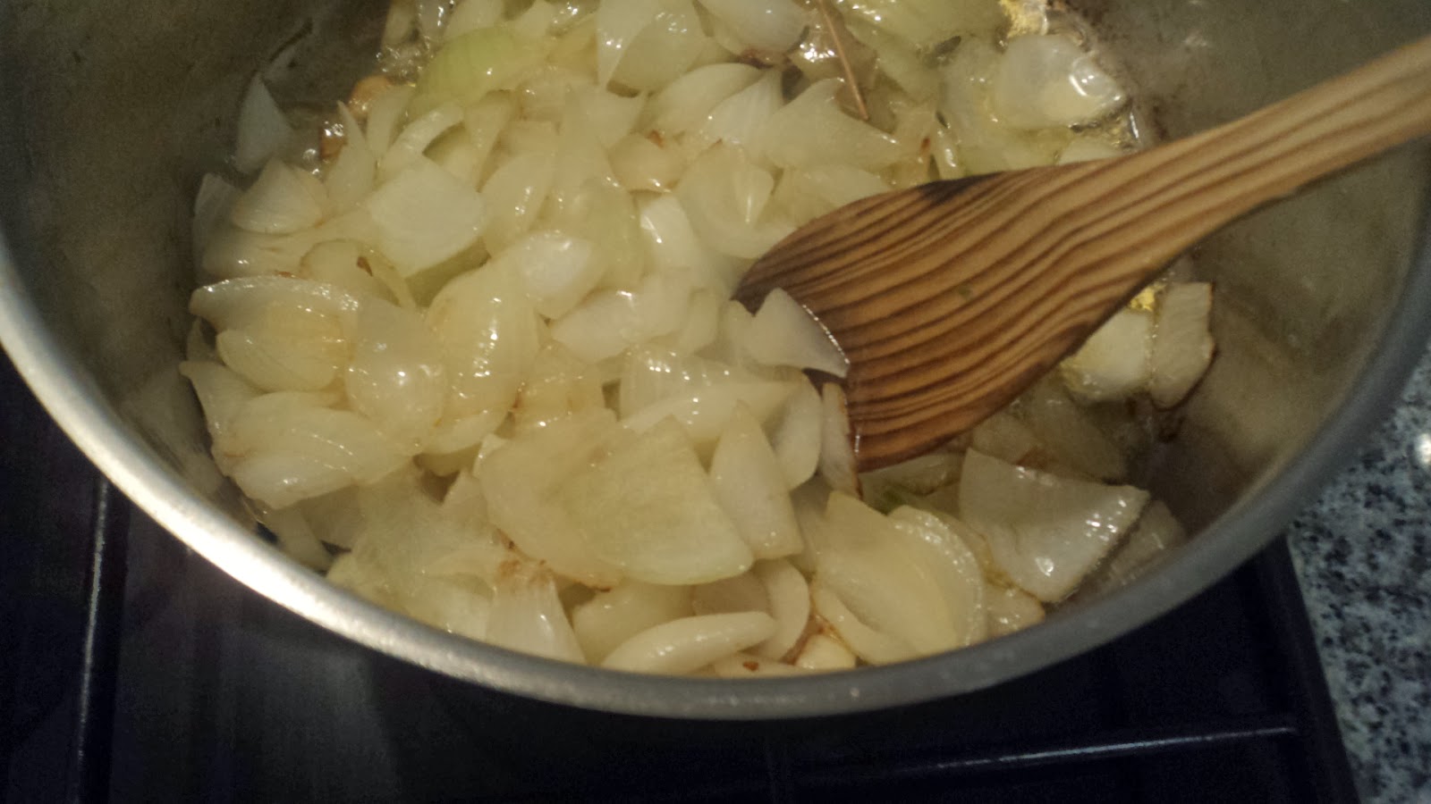 - Fazer um refogado com muitaaaa cebola picada, 2 alhos picados, 2 folhas de louro e azeite.