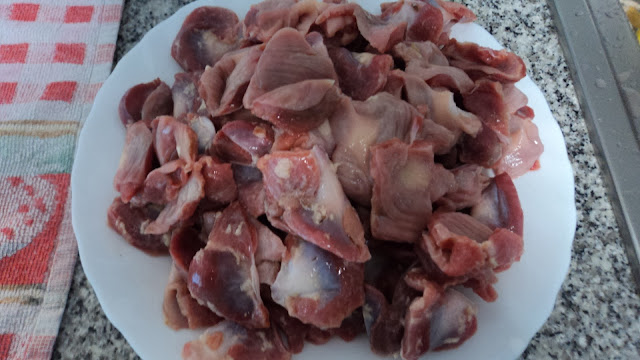 - Lavar e limpar bem as moelas. Parti-las em bocadinhos mais pequenos e reservar.