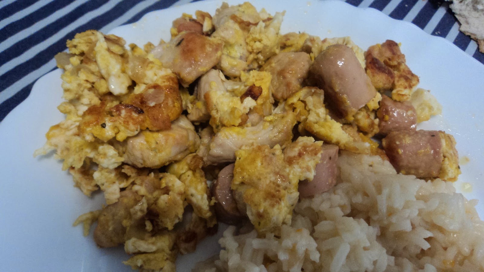 D-I-V-I-N-A-L!!! Uns ovos mexidos com bife de perú grelhado e salsicha de aves... Até podem achar que ovos mexidos é uma coisa simples de fazer... Que o é! Mas estes estavam no ponto ;-)