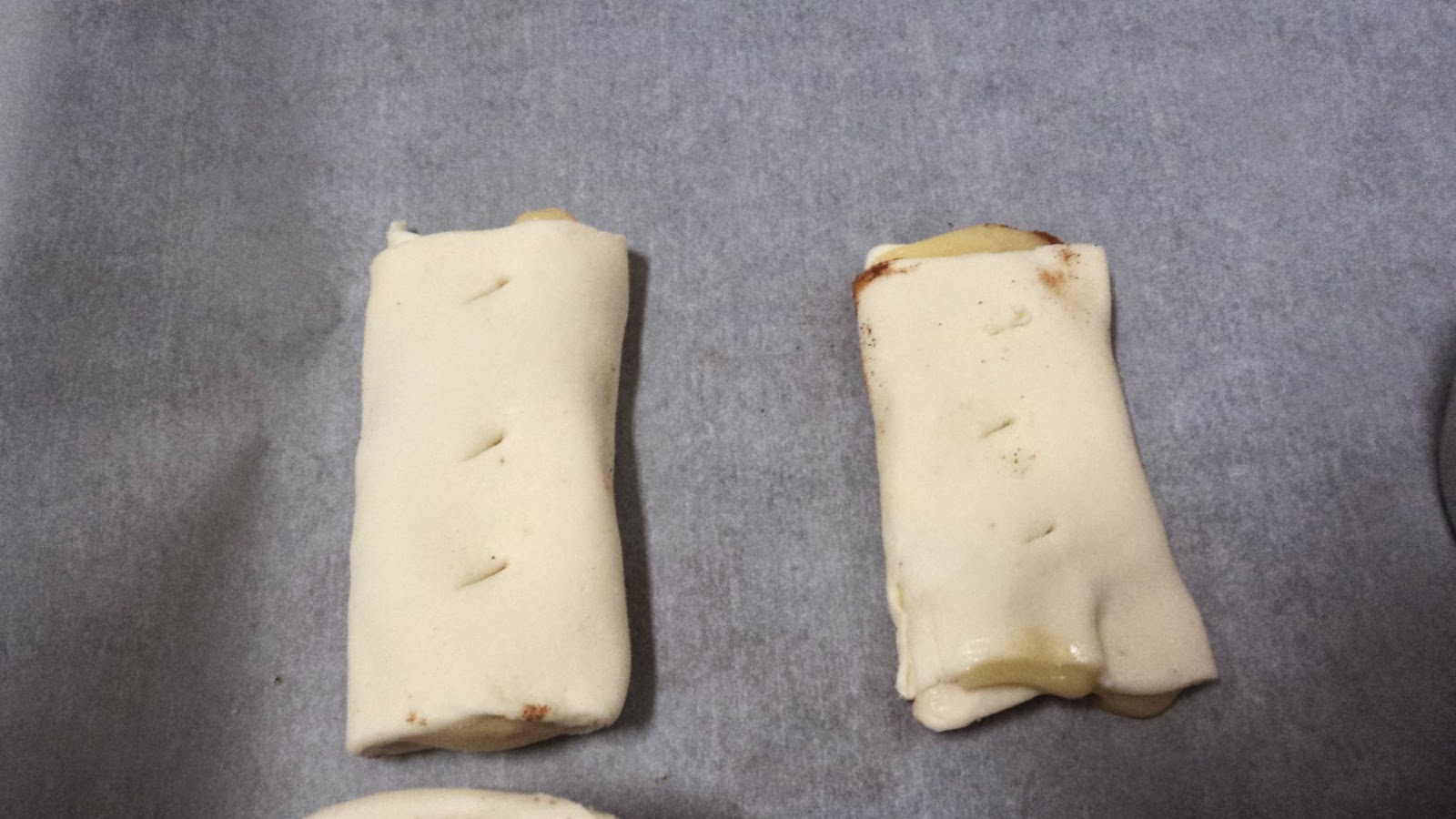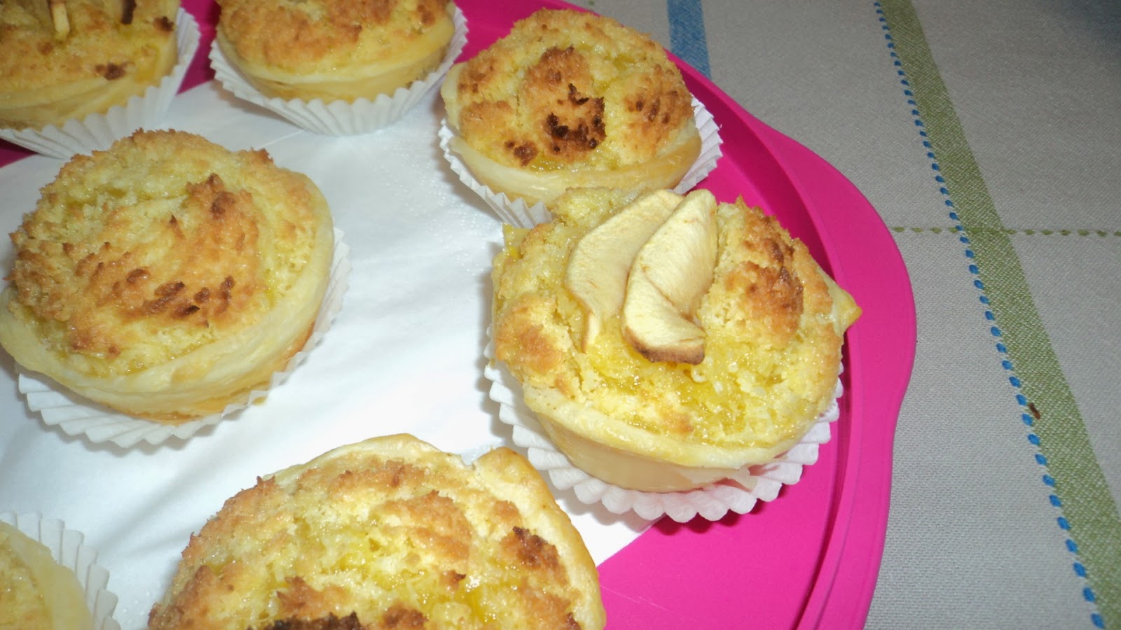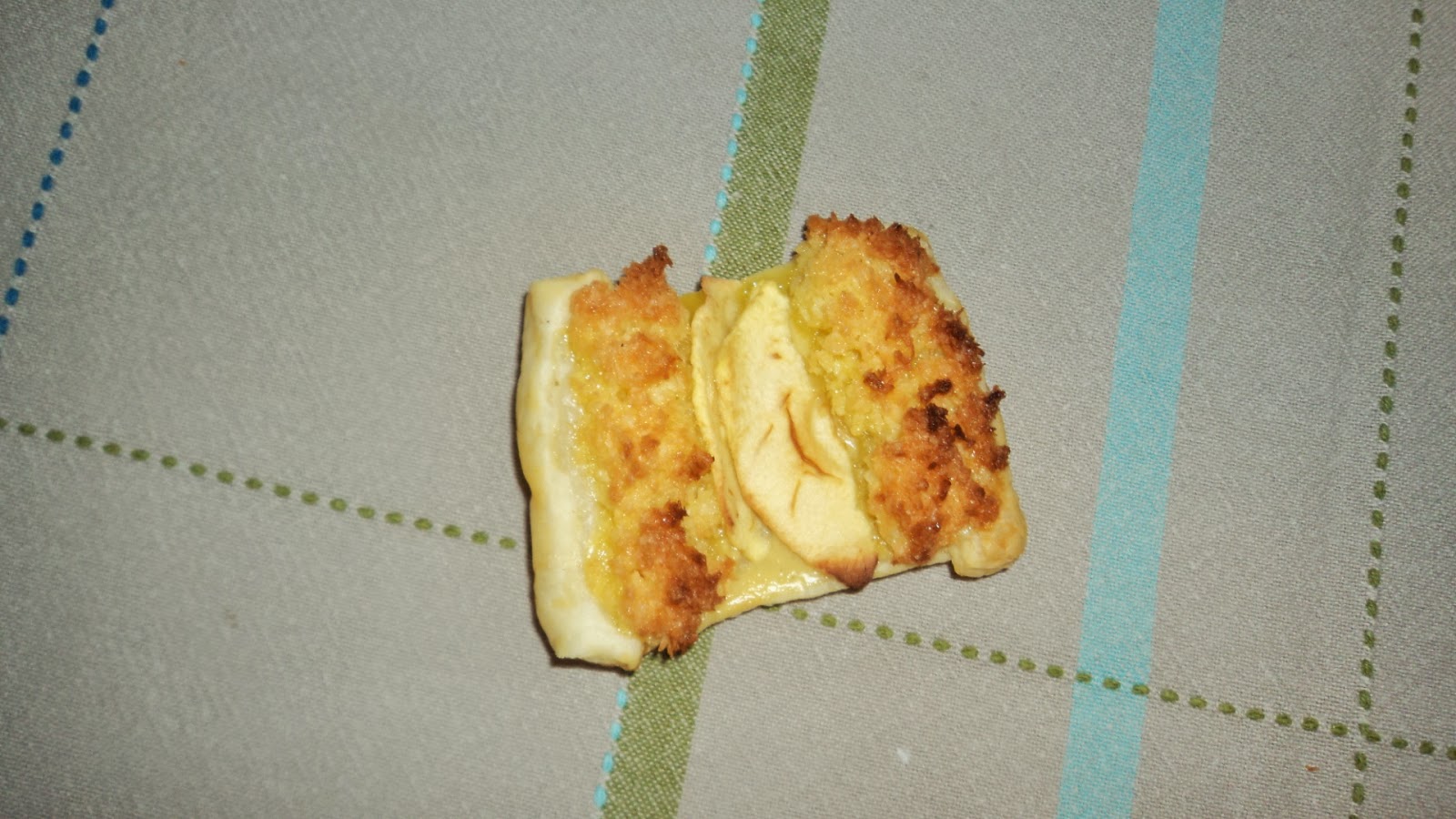 Folhados de coco, com maçã e recheio de dulcicreme de canela