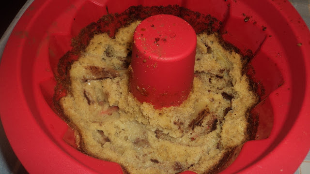 Apesar de a 'capa' do bolo ter ficado agarrada na forma, o bolo estava delicioso! Já experimentei fazer o bolo noutra forma sem ser de silicone e ficou direitinho e igualmente bom! O que me agradou neste bolo foi a textura húmida conferida pela maçã e o sabor a canela. Sem dúvida que este bolo é para repetir muitas e muitas vezes, pois foi aprovado cá em casa.