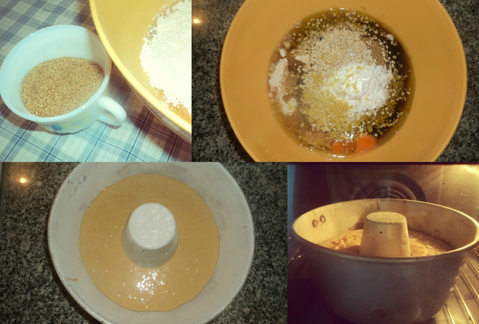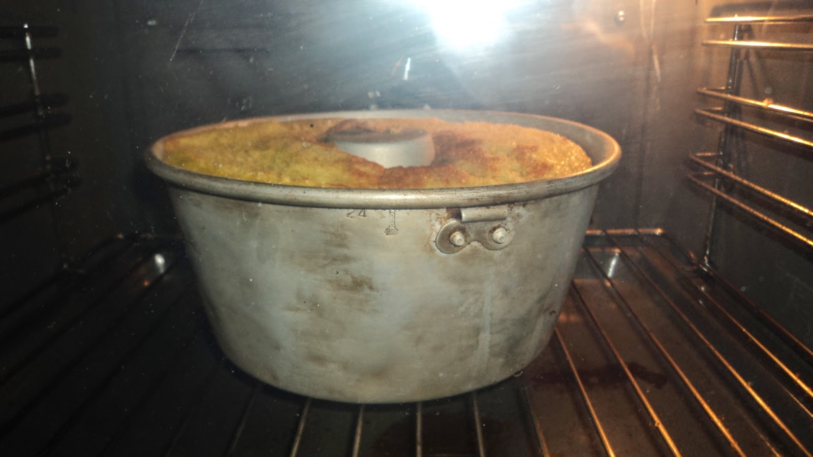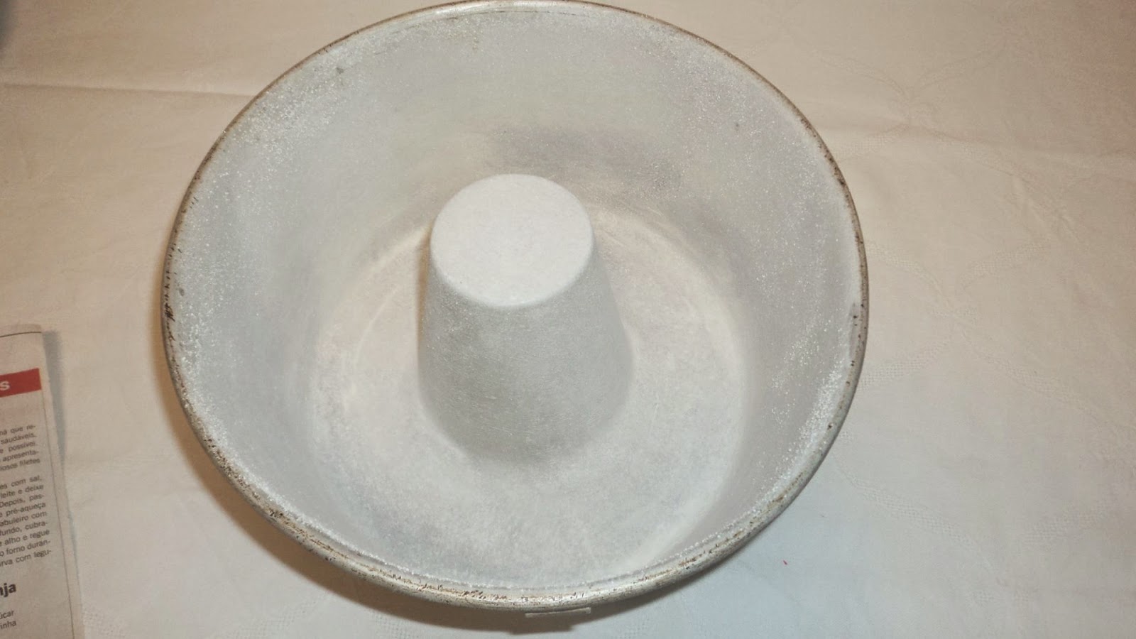 - Untei com margarina uma forma de bolo c/ buraco e enfarinhei-a