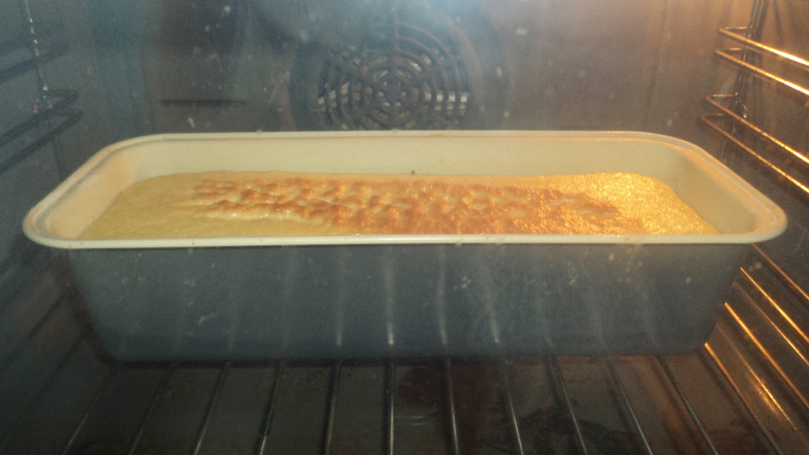 - Verter a massa para uma forma untada com margarina e farinha e levar ao forno a cozer durante +-30minutos (no meu forno - fazer o teste do palito).