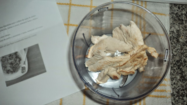 - 100g de vitela picada (usei bife de perú - sobras e piquei-o)