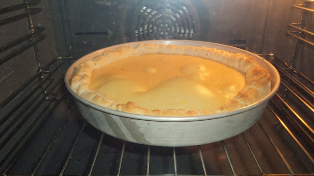 - Estender a massa folhada na forma e picar o fundo. Reservar.